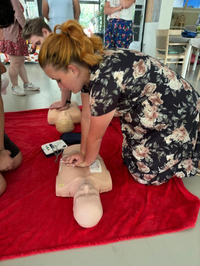 V druhé části kurzu se naučíte základní neodkladnou resuscitaci s použitím automatizovaného externího defibrilátoru a techniku vypuzení cizího tělesa z dýchacích cest.